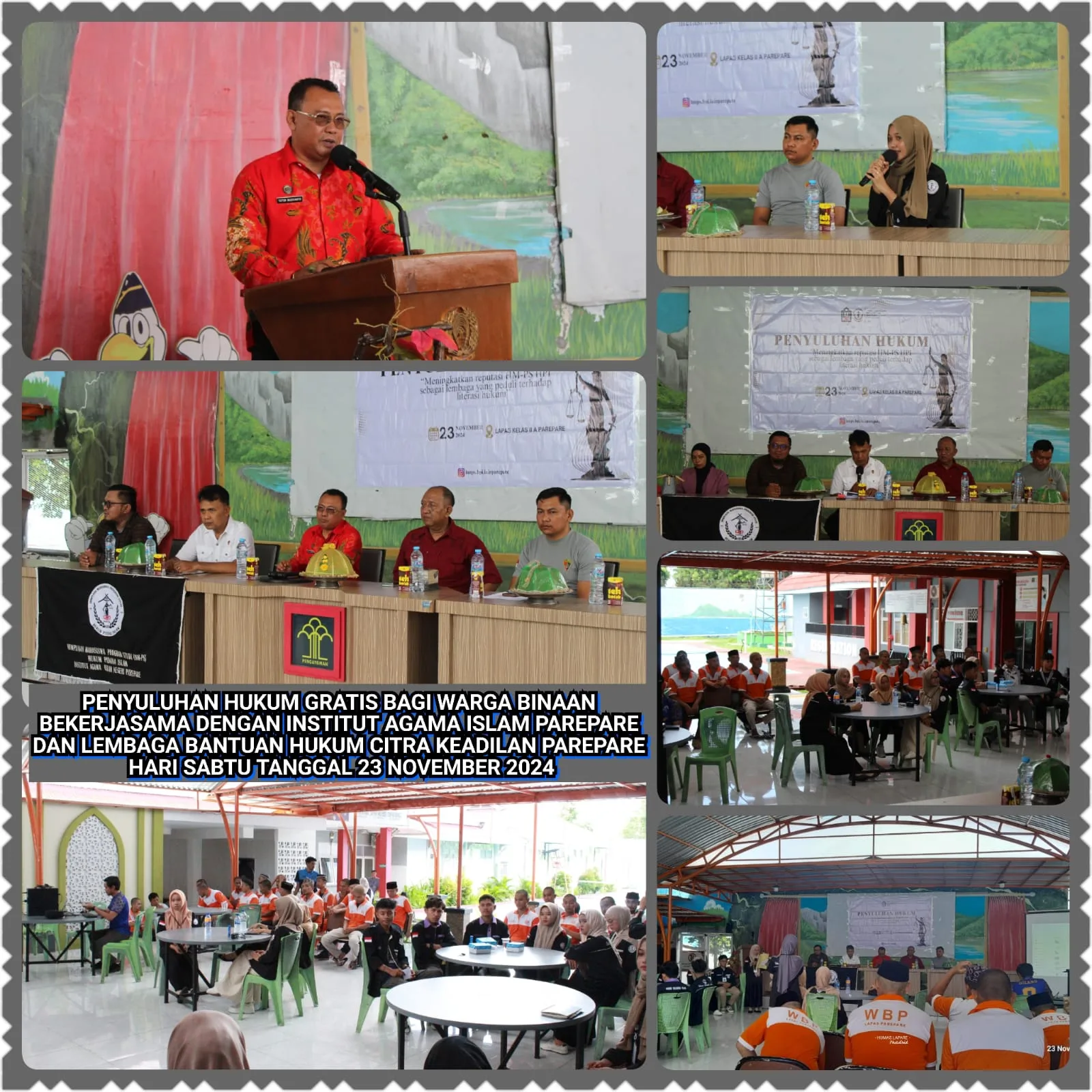 Parepare, TARGETTUNTAS.ID — Lapas Kelas IIA Parepare kembali melaksanakan penyuluhan hukum gratis bagi Warga Binaan Pemasyarakatan (WBP). Kegiatan ini digelar atas kolaborasi dengan Institut Agama Islam Negeri (IAIN) Kota Parepare dan Lembaga Bantuan Hukum (LBH) Citra Keadilan Kota Parepare. Sebanyak 30 warga binaan yang berstatus tahanan dan 30 mahasiswa IAIN Parepare ikut serta dalam kegiatan yang berlangsung pada Sabtu (23/11).