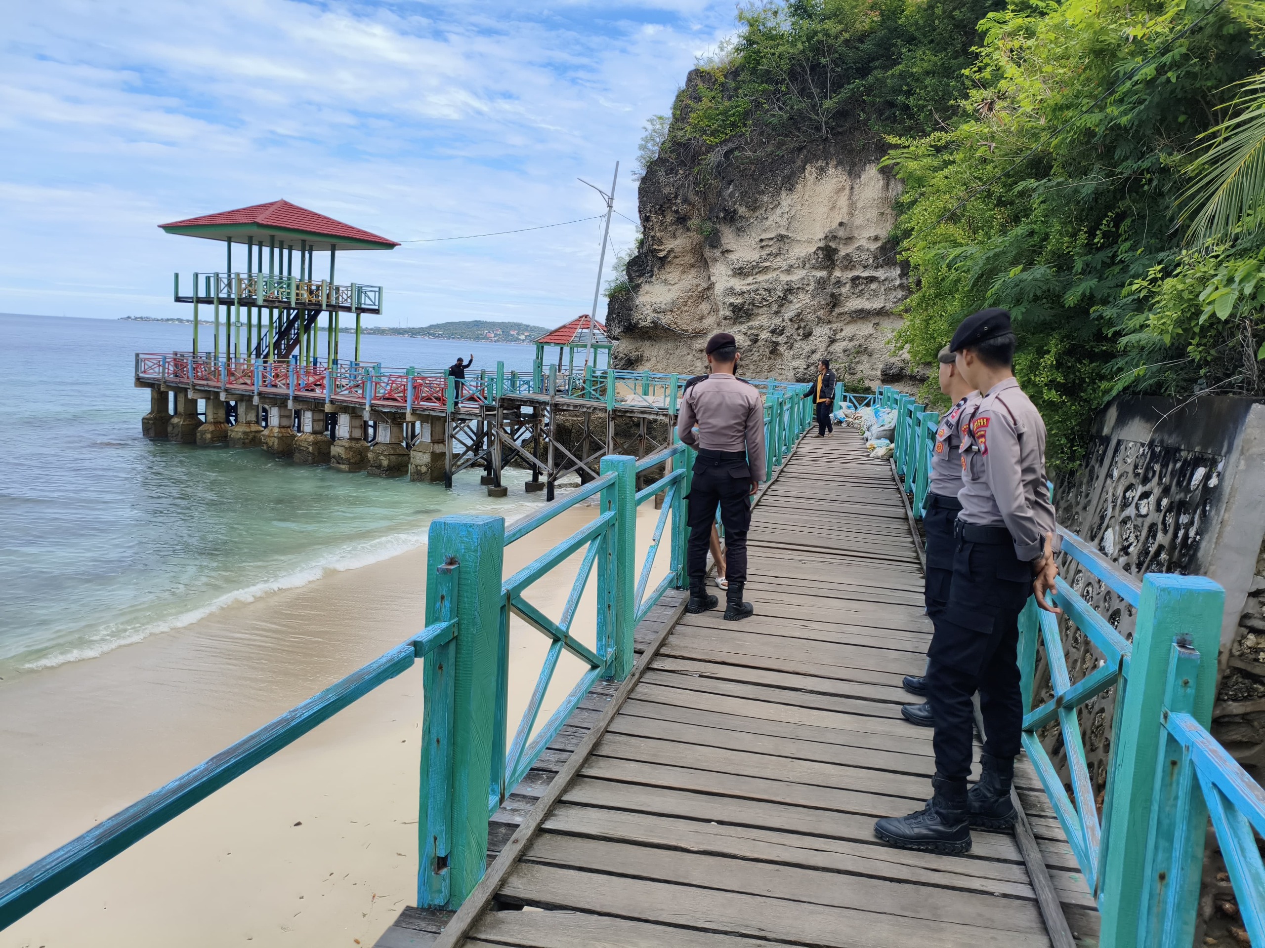 Dalam patroli tersebut, personel Samapta menyisir sejumlah titik keramaian, melakukan dialogis dengan pengunjung, dan memberikan imbauan terkait kewaspadaan terhadap barang bawaan serta terus mengawasi sanak saudara jika hendak bermain di pesisir pantai.