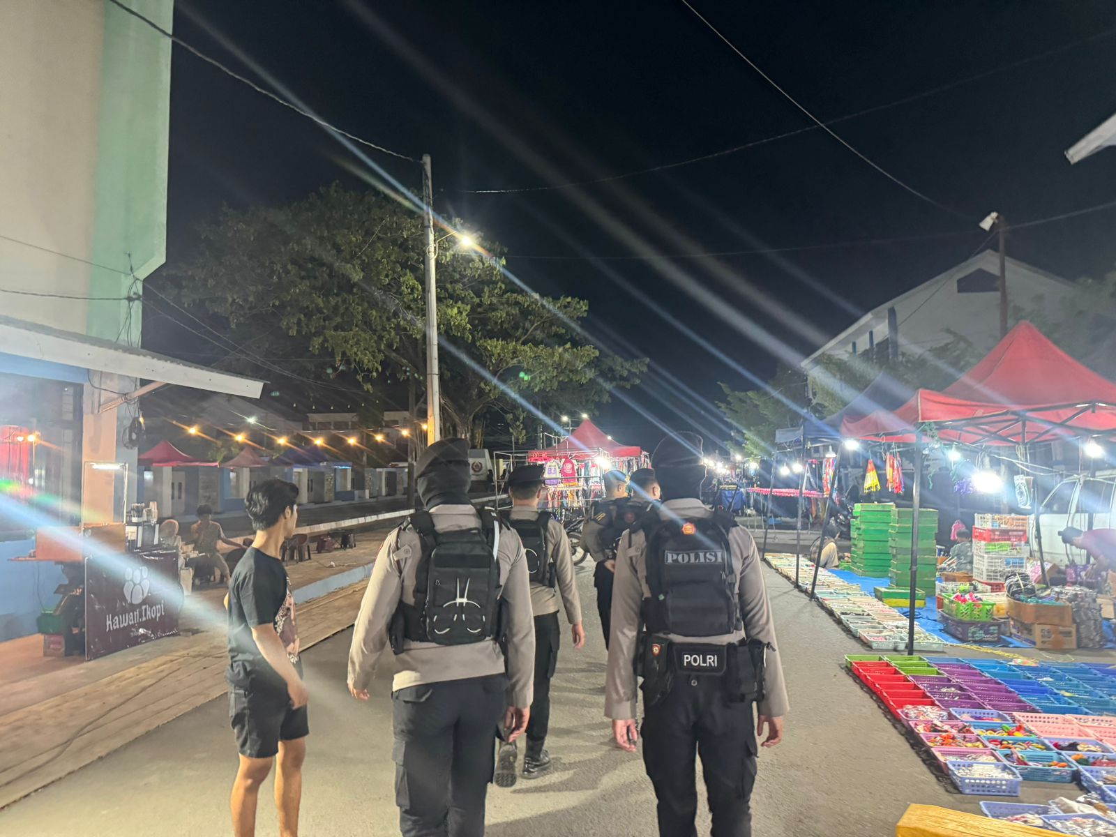 Kegiatan patroli dipimpin langsung oleh Aiptu Awaluddin bersama personelnya dengan menyambangi masyarakat, pedagang, serta pengunjung yang beraktivitas di lokasi keramaian.