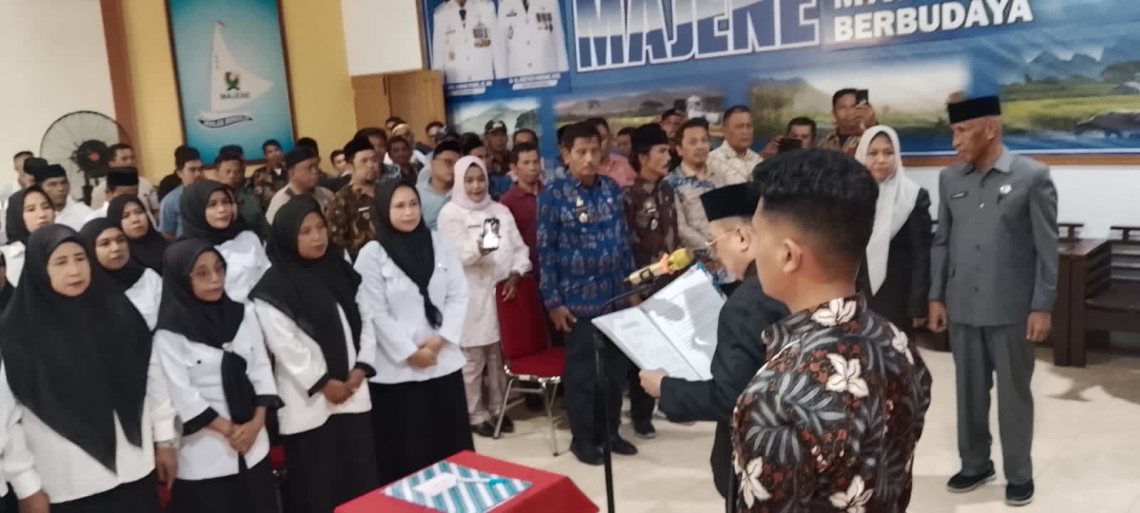 MAJENE – Pemerintah Kabupaten Majene menggelar prosesi pengambilan sumpah dan pelantikan Pengganti Antar Waktu (PAW) Anggota Badan Permusyawaratan Desa (BPD) se-Kabupaten Majene. Kegiatan yang berlangsung di Ruang Aula Dinas Pemberdayaan Masyarakat dan Desa (PMD) pada Kamis (02/04/2026) ini, dipimpin langsung oleh Bupati Majene, Dr. H. Andi Achmad Syukri Tammalele, S.E., M.M.