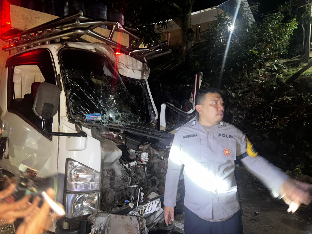 Selain korban luka, bagian depan Truk Isuzu mengalami kerusakan parah dengan estimasi kerugian materiil sekitar Rp20 juta.